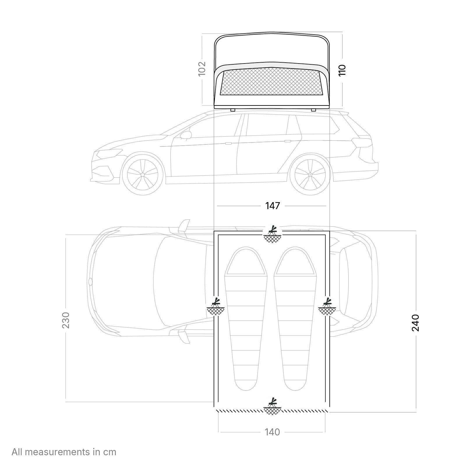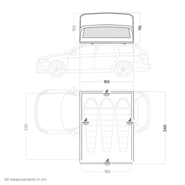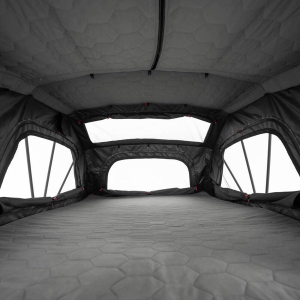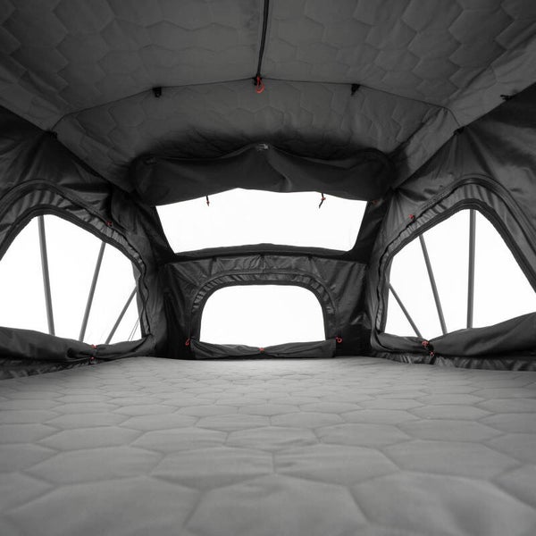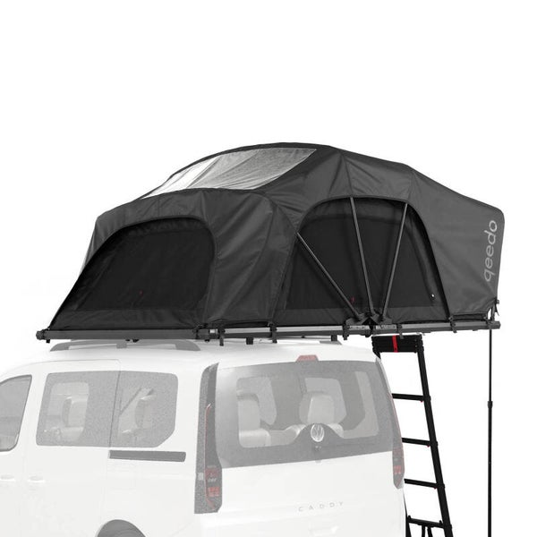 Klappzelt: Ein klappbares Softcover-Dachzelt - erhältlich in zwei Größen. Komfortable Liegebreite ideal für zwei oder drei Personen.